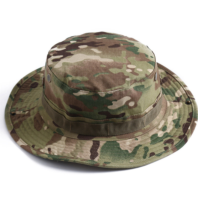 Upgrade your everyday hat with the TWS Cotton Wide Brim Boonie Hat. Available in camouflage and multiple colors, it pairs perfectly with both uniforms and plainclothes. This Boonie hat is equipped with an adjustable chin drawstring to hold the hat in place on windy days and to ensure a secure fit. Unique oversized brim design to protect you from sun and sand. Wide brim and screened side vents are designed to keep you cool in the blazing sun and in your combat game.